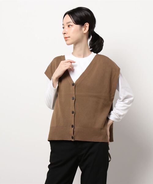表情の変化が楽しめる、前後2WAYのベスト。サイドリボンがさりげなく愛らしさをプラスし、フェミニンな印象に。コンパクトな着丈でスタイルアップしてくれるのもうれしいポイントです。取り入れるだけでトレンドのレイヤードコーデが完成するアイテムです。