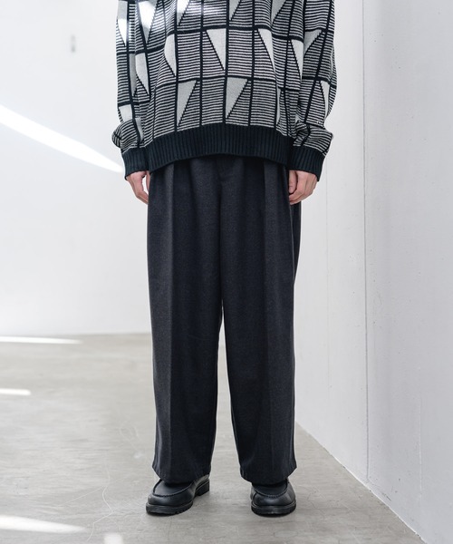Casper John 2021 AUTUMN and WINTER Collection -runway- 【Melange TR Tuck Wide Slacks/メランジTRタックワイドスラックス】 ◆素材特性 肉厚なメランジTRを使用 高品質でしっかりとしたハリ感があり 冬でも暖かく着用が可能 肌触りも非常によく滑らかな質感で 着心地も抜群です。 ◆シルエット 素材のボリューム感を活かしたワイドシルエット 適度なテーパードで綺麗さと存在感の両立に成功 シンプルなトップスと合わせても お洒落な雰囲気に仕上がります。 ◆デザインディテール 徹底的に着回しを重視したシンプルなデザイン 余計なデザインを省き、素材とシルエットのパフォーマンスを上げた トレンドに左右されない素材で長年使い回せる 秋冬の新定番です。 《BRAND CONCEPT》 CREATIVE / MODE / URBAN をコンセプトに、 トレンドに敏感な都会人、常に新しいファッションを求める方 に、遊び心を追及した創造性の高いモードスタイルを提案する。