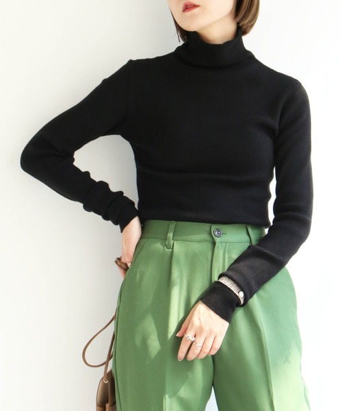 肌寒くなる季節に一枚持っていると重宝するタートルネックニット。 首元まで包み込んでくれるデザインは、薄手ながら温かさがありつつ、すっきり見えします。 袖丈が長めにおつくりしていることで、手首あたりでくしゅっとさせたり 手の甲までのばして着たりすることでベーシックアイテムですが、 こなれ感がでておしゃれな印象に! トップスとして着ていただくのはもちろん、インナーとしてレイヤードにもおすすめです。 もちもちっとした触りごこちで着心地もよく、秋冬のコーデを幅広く楽しめる優秀アイテムです。 [クリーニング] 手洗い可 ドライクリーニング可(F) ウェットクリーニング(W) 【お買い物をよりお楽しみいただく為に♪】 ★商品のお気に入り登録★ 完売カラーの再入荷通知や、ラスト1点の通知、セールの通知も受け取ることができます。 ★ブランドのお気に入り登録★ 新商品や再入荷など、いち早くブランドのお得な情報を受け取ることができます。
