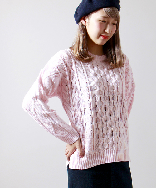 全体をケーブル編みで仕上げたニット。単色仕様ながらも、ケーブル編みの柄目が程よいアクセントになるひと品。一枚で着用頂くのは勿論、インナーとしてお使い頂くのもオススメ。シンプルなデザインで、シーズンまたいで長くご愛用頂けるひと品です。 店舗にてお問い合わせの際は、下記の品名・品番をお申し付け下さい。品名:ケーブル編みセーター 品番:BL14WN-2403-003 modelH165 B78 W56 H85 着用サイズ:FREEmodelアイボリー H163 B80 W59 H88 着用サイズ:FREE