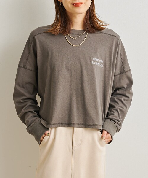 刺繍ロゴがさりげなく可愛いショート丈ロンT【ポイント】●胸元の刺繍ロゴがアクセントになるロングTシャツ●切り取り線のようなチェーン刺繍がキャッチ―なデザイン●ゆるっとしたシルエットながらもショートな丈感が今年らしいトレンドライクなディテール●同色ステッチが大人っぽくさりげないワンポイントに●メンズライクながらも女性らしいスタイリングが叶う1枚【オススメコーディネート】・タイトやマーメイドシルエットの柄スカート合わせで女性らしいムードを取り入れたカジュアルコーデがオススメ・デニムやカラーパンツで定番のカジュアルスタイルにも◎--------------------------------------------------------------生地の厚さ:やや薄手伸縮性:あり透け感:ややあり裏地:なし洗濯方法:ご自宅での洗濯可--------------------------------------------------------------※商品のお取り扱いに関しましては、商品に付属のアテンションカード、洗濯ネームをご覧ください。※撮影場所やお使いのモニター環境により若干お色味が異なる場合がございます。特にロケの撮影では明るく見える傾向にございます。 ※サイト上ではフリーサイズの表記ですが、商品タグにはMサイズと表記されている場合がございます。その場合、ワンサイズでのご用意となりますのでサイズミスなどではございません。詳しいサイズはサイズスペックをご確認いただきますようお願い致します。※サイト上でのカラー名とお届けした商品に記載されているカラー名が異なる場合がございますので予めご了承ください。--------------------《Information》--------------------【商品のお気に入り登録】▼【ハートマーク】をクリック!完売カラーの再入荷通知やラスト1点の通知、セールの通知を受け取ることができます。【PAL CLOSETアプリにてブランドフォロー】▼新商品や再入荷、セール情報やクーポン配布などブランドのお得な情報をいち早く受け取ることができます。是非ご登録頂き、お買い物をお楽しみください◎ <返品・キャンセルについて>・着用・洗濯後の返品は致しかねます。・商品到着後、着用前に商品を確認して頂きますようお願い致します
