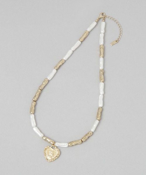 メタルとパールをハンドメイドで仕上げたようなBIGビーズネックレスです★ ハートのパーツは炭加工してビンテージ風に仕上げております。パールはでこぼこ不規則に波をを打ったような表面で高級感のあるプラパールに♪ パーツの並びもランダムにしてMIX感を目立たせたデザインがポイントです★-INFORMATION-◆商品のお気に入り登録完売していても再入荷時に再入荷通知を受け取ることができますので、是非ご登録ください♪◆ブランドのお気に入り登録新商品や再入荷などの情報を受け取ることができますので、是非ご登録ください♪