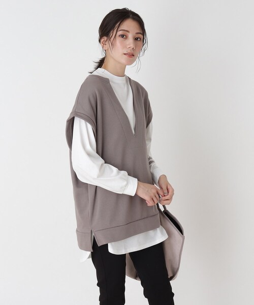 【デザイン】薄手の裏毛素材とシンプルな長袖Tシャツをセットにした、これ一枚でトレンドのレイヤードスタイルがきまるお得なアイテムです。裏毛は深めのキーネックにしてインナー部分を多くみせることで抜け感ある今年らしいコーデが完成します。それぞれシンプルなデザインで、様々な着まわしが可能です。【生地感】柔らかくふんわりしていて優しい肌触りです。※Tシャツはやや透け感があるため、インナーの着用をおすすめします。モデル情報:身長167cm B78 W62 H88 着用サイズ:02(M)店舗へのお問い合わせ商品番号:C62-13057●製品寸法:02(M):アウター着丈68cm アウターB114cm アウター肩幅61cm インナー着丈76cm インナーB112cm インナー袖丈47cm インナー肩幅56cm03(L):アウター着丈70cm アウターB117cm アウター肩幅62cm インナー着丈78cm インナーB114cm インナー袖丈48cm インナー肩幅57cm04(LL):アウター着丈72cm アウターB120cm アウター肩幅63cm インナー着丈80cm インナーB116cm インナー袖丈49cm インナー肩幅58cm備考: