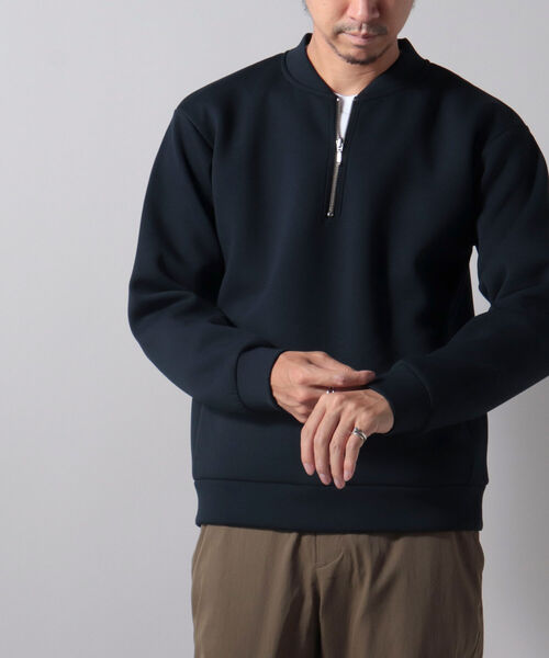 ダンボールニットを使用したハーフジッププルオーバー。 ツヤのある生地感とスッキリとしたシルエットでキレイめスタイルに。 クルーネックTシャツはもちろん、タートルネック、シャツなどを首元から覗かせてレイヤードスタイルも楽しめるアイテムです。 ※店頭及び屋外での撮影画像は、光の当たり具合で色味が違って見える場合があります。商品の色味は、スタジオ撮影の画像をご参照下さい。 ※製品洗い加工の商品は、寸法に個体差が発生する場合があります。 ※商品画像に関しては出来る限り忠実に表示出来るよう努めておりますが、お客様がご利用のモニターの設定及び特性により、実際の商品と比較し色味に若干の誤差が生じる場合があります。 ※画像の商品はサンプルとなりますので実際の商品と仕様、加工、サイズが若干異なる場合がございます。 ※お取扱い上のご注意 アテンションタグを必ずご確認の上、着用又はお取り扱い下さい。