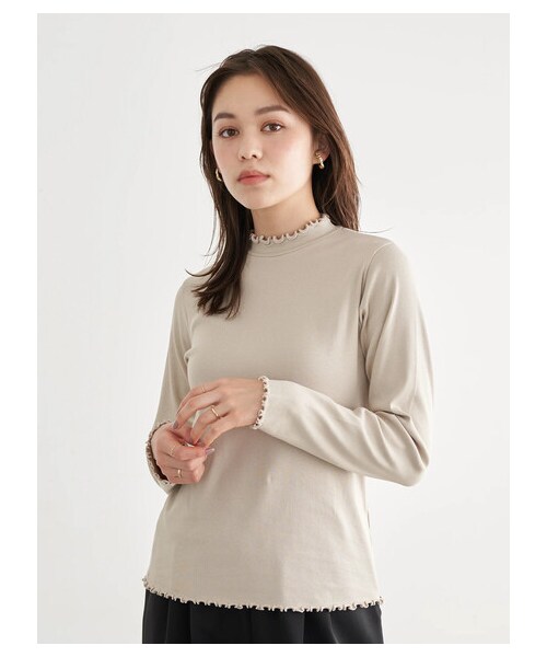 ハイネックにあしらった、もこもことしたメローフリルが愛らしいプルオーバー。 伸縮性のあるリブ素材で着心地が良いのも嬉しいポイント。 落ち着いた色合いでコーディネートにも取り入れやすく、カジュアルから綺麗めコーデにと、幅広く活躍してくれるアイテムです。
