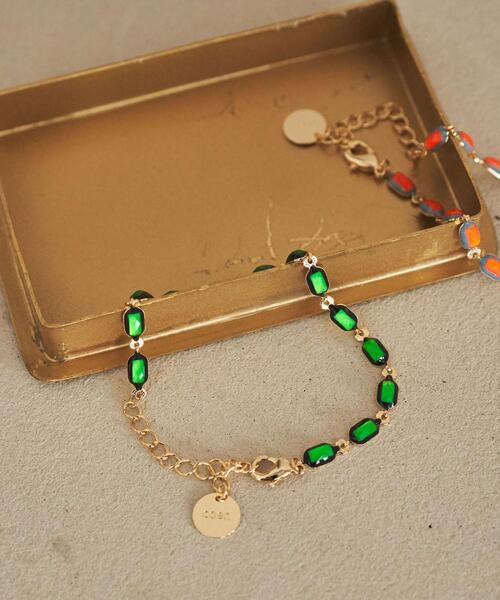 ~2021 FALL/WINTER COLLECTION~きらりと光るカラーパーツが手元にアクセントをプラス同シリーズでピアス(品番:76836180120)ネックレス(品番:76836180136)もございます。■デザイン/素材エレガントな多面カットのカラーパーツを連ねたブレスレット。どことなくレトロな配色や表面感のあるメタル部分、ロゴ入りのサークルプレートも目をひきます。長さ調節可能なアジャスター仕様と着脱しやすいカニカンフックもポイント。■スタイリングパーツとメイクや洋服の色味をリンクさせたり、シンプルな着こなしの差し色にもオススメです。単品使いはもちろん、同シリーズのネックレスやピアスとセットで身に着けるのもオススメです。【注意点】※撮影商品はサンプルの為、実際の仕様と異なる場合がございます。※画像の商品は光の照射や角度、お使いのモニター環境により、実物と色味が異なる場合がございます。スタジオ物撮りの画像が実物の色味に一番近くなっております。※予約商品の場合、実店舗への入荷は「お届け予定」とほぼ同時期となりますが、実店舗への入荷が前後する場合もございます。品名:FC カラー パーツ ブレス 品番:7683-618-0135