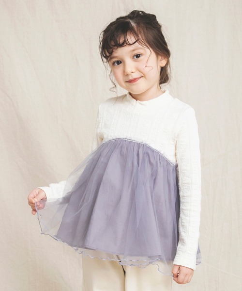 ベビー商品とのペアもオススメです♪ペアアイテム↓【ペア】ケーブル柄長袖カバーオール (02-1439-031)-----透け感:なし伸縮性:ありチュール部分:伸縮性なし