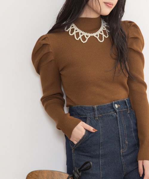 シンプル×女性らしいリブ使いのタックパワショルニット<DESIGN>伸縮性に優れたリブ素材の、あたたかくフィット感のあるシンプルなハイネックニットです。身体にフィットするニットを着たときに気になる二の腕部分にボリュームを持たせカバー力UPなデザインです。トレンド感だけでなく、スタイルアップ効果も兼ね備えています♪プチハイネックのデザインは胸元をすっきりと見せ、大人っぽい印象を与えてくれます。シンプルながらもポイントのあるデザインなので、デニムやスラックスに合わせただけでおしゃれコーデに◎女性らしいパワショルは、スカートに合わせるとガーリーなコーデに仕上げてくれます♡<CARE>※詳しくは製品に付属している洗濯表示をご参照ください。※撮影環境により、多少実際のカラーと異なる場合がございます。 また、携帯やスマートフォン、パソコンなどの画面上と実物では多少色が異なって見える場合がございます。タック:プチハイネック:ハイネック:HN:ボリューム袖:袖:デコラティブ:韓国風:リブ:リブニットレイヤード:インナー:華奢見え:秋カラー:秋冬:トレンド:伸縮性:伸び:グリーン:二の腕