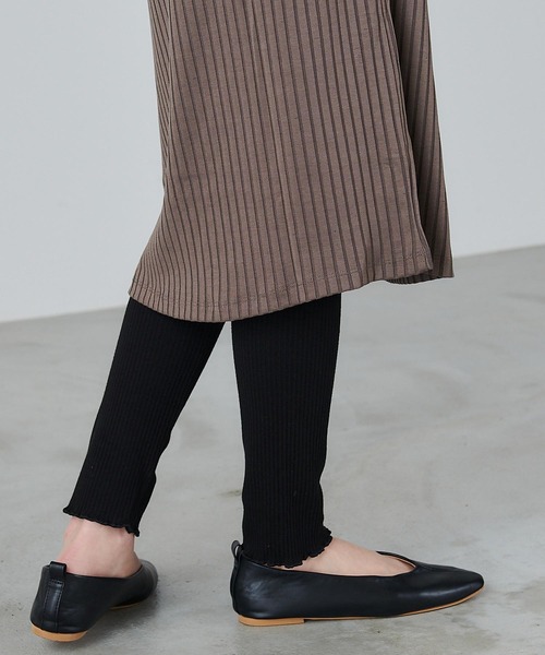 ー定番レギンスシリーズー 定番人気アイテム、レイヤードスタイルの大活躍! “ロングワンピースやロングスカート”とのコーディネートとして相性抜群です! 【DESIGN】 太もも下あたりからふくらはぎにかけては程よく体にフィットするシルエットで、足のラインを美しく見せてくれます。 裾がややフレアーのため、カジュアルでありつつ柔らかい女性らしい印象をプラスしています。 細リブ素材を使用しているので、シーズンレスで着回しやすいポイントです◎ 【COLOR】 ■ブラック:通常のベーシックなブラックです。 着やせ効果も高く、モードな雰囲気でシックな印象のカラーです。 ■オフホワイト:クリーム色に近い柔らかな雰囲気のオフホワイトです。 ナチュラルさもあり女性らしいしなやかな印象もあるニュアンスカラーです。 ■グレー:通常ベーシックなグレーです。 大人カジュアルの着こなしがお好きな方におすすめのカラーです。 【STYLING】 スカートやワンピースのコーディネートや、程よい厚さの素材なのでトレンドのビッグシャツに合わせてパンツのようにはいてもまとまります◎ デニムの代わりに使える上質レギンスのため、着回し上手なマストアイテムです! 【eversince/エバーシンス】 “服を着替えることで毎日新しい自分になりたい” 女の子の欲張りな気持ちを叶えるスタイルを提案 【 INFORMATION 】 ▼お気に入り登録▼ 『♡』マークを押してお気に入り登録をすると、割引クーポンの発行/セール開催の通知/タイムセール通知/人気商品の再入荷通知など、 eversince取扱いブランドのお得な情報を受け取ることができます。 気になった商品はどんどん『♡』マークを押して、登録してくださいね♪ ※取り扱いについては、商品についている品質表示でご確認ください。 ※ご覧のモニター・撮影環境により実際の商品と多少色味が異なって見える場合がございます。 予めご了承をお願いいたします。