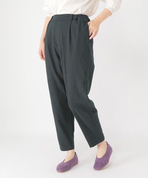 ーーー 自社独自で開発した環境にやさしいサスティナブル素材のリファルコを使用したテーパードパンツ。 合わせやすいガンクラブチェックが秋らしく、ストレッチが効いていて穿きやすいアイテムです。 ヒップ回りは程よくゆとりがあり、ひざ下をすっきり見えるように裾にダーツを入れシェイプさせたシルエットに。 ウエストは後ろゴム+ヒモでイージーに着用でき調節も可能◎ 派手すぎない落ち着いた柄なのでオフィスなどにもオススメです。 ーーー