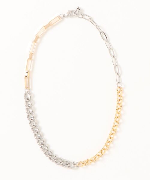 異なるチェーンをドッキングしたネックレス。ゴールドとシルバーMIXしハイエンドな雰囲気に。コーディネートのアクセントにもぴったり◎【jouetie ZOZOTOWN お買い物ガイド】▼商品をお気に入り登録!完売商品の再入荷やラスト1点の通知、セール開始時にお知らせ!▼"jouetie(ジュエティ)"をお気に入りブランドに登録!新商品や再入荷など、ブランド最新情報をいち早くお知らせ!是非、ご活用いただきお買い物をお楽しみください◎【jouetie official Instagram】jouetie_officialブランド最新情報をいち早くチェック!新作情報や着回し、お得な情報などをご紹介♪