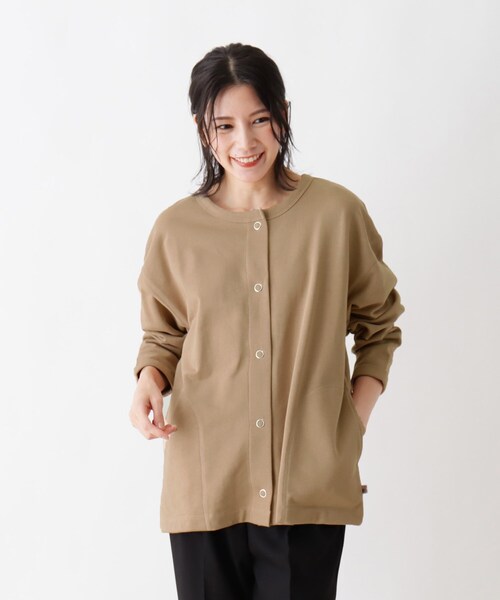 大人気なUSAコットン裏毛シリーズに、気軽に羽織れるカーディガンタイプが登場!リングドット釦がポイントになったデザインです。程よいゆとりで着心地よいサイズ感も魅力的♪【素材】USAコットンは、しっかりとした綿素材で編み立てることで、さらっとした程よい柔らかさと肌馴染みが良いのが特徴です。着用を繰り返す事で特徴的な風合いを長くお楽しみいただけます。<USAコットンとは・・>アメリカの綿農家は、世界で最も膨大で、厳密で、強制力のある規制の下に農業を営んでおり、持続可能な農法で、品質の良い綿を栽培しています。・水と農薬の消費を極力抑えて栽培。アメリカの綿作地の3分の2は雨水だけで栽培。水の消費効率は過去35年間で82%改善・コンピューターによる測定システムを利用した近代農法無人航空機技術により綿畑を「マッピング」でき、水などの散布が必要な場所が正確にわかり、水と植物保護製品の使用を無駄のない適切な量に調整できます。コンピューターを利用した湿度センサーが水使用の効率性を高め、また「無耕作」技術も用い、土壌を守っています。・安定品質を安定供給最新の科学技術を駆使して効率的な生産体制で栽培を行っている為、安定した品質の綿花を安定して供給できます。また、異物の混入などを妨げるのも機械化によるメリットの一つ。【シルエット】程よいゆとりがありながら、太って見えないサイズ感にこだわりました。ヒップが隠れる着丈で安心感も♪【デザイン】リングドット釦がポイントを効かせたカーディガン。衿ぐりとそで口のリブでカジュアル感がある1枚です。※ポケット数:横×2LLサイズはWEB限定サイズです。モデル情報:身長167cm B78 W62 H88 着用サイズ:02(M)店舗へのお問い合わせ商品番号:C62-33002●製品寸法:02(M):着丈63cm B110cm 袖丈50cm 肩幅55cm03(L):着丈66cm B113cm 袖丈52cm 肩幅56cm04(LL):着丈68cm B116cm 袖丈53cm 肩幅56cm備考:
