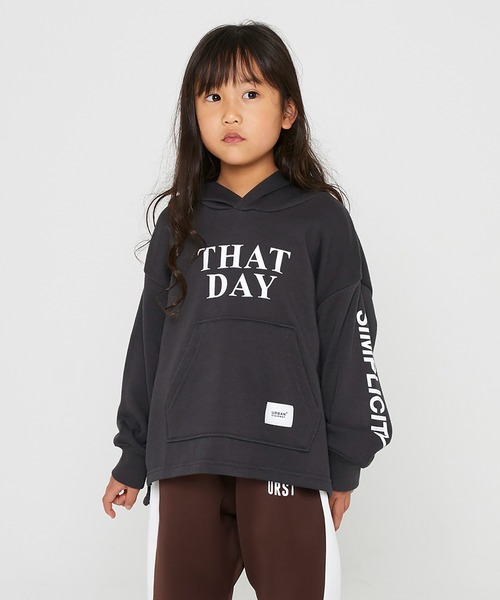 袖のプリントがおしゃれなフード付きのプルオーバー。脇に少し入ったスリットがデザインのポイントです!サイズ:S(90-100),M(110-120),L(130-140),XL(150-160)