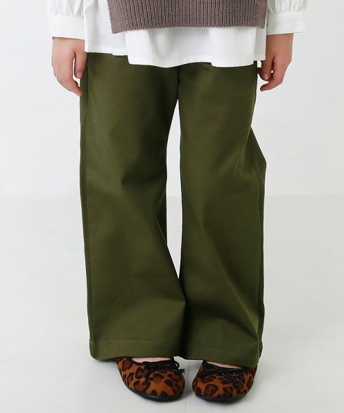 ゆるっとカジュアルな『チノワイドパンツ』 程よいハリ感で、広がりすぎないすっきりとした印象のワイドシルエットに仕上げました。 トップスをインしてベルトを見せる大人っぽいスタイリングもおすすめです。 ■素材■ しっかりとしたハリ感のあるチノ素材 ほどよい厚みがあり、丈夫でヘタれにくいのコットンツイルを使用。 カジュアルになりすぎず、上品な印象に仕上がります。 ■ディティール■ 伸縮性:なし ・ウエストゴムでラクな着心地。 ・ゴムの取替え口付き ・両サイドにポケット付き ・裏側にお名前タグ付き ■アテンション■ ・商品は平置きして採寸していますので、商品によってはサイズや形に多少の誤差が生じる場合がございます。 【ブラック】 ・染料の性質上、汗や摩擦により色落ちしたり、他に色移りすることがありますのでご注意ください。 ・洗濯後、濡れたまま放置すると色移りするのでお避けください。 ・淡色の衣類と一緒に洗うと色が移る事がありますので、お洗濯の際は単色洗いをしてください。 子ども服devirock 男の子・女の子のデイリーウェアを中心に、ベビーからキッズまで豊富なラインナップの子供服を展開。 心地よいデイリーウェアや、トレンドの子ども服をお手頃価格で。幅広いサイズ展開で兄妹や親子でリンクコーデも楽しめます。