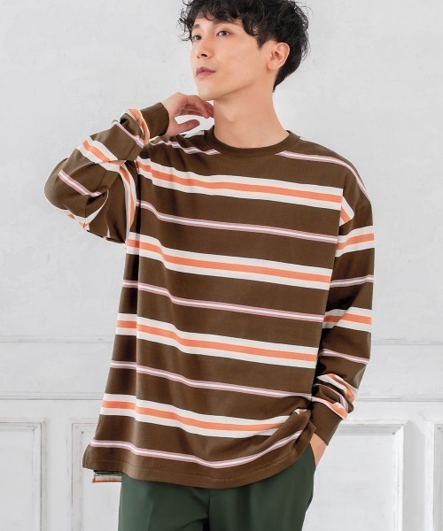 トップスに一枚でも、ジャケットのインナーとしても使いやすいバスクシャツの素材を使用したマルチボーダーカットソー。 ガシッとした触感の肉厚で頑丈に仕上げた天竺生地。 襟ぐりと袖口はリブ使いでキュッと引き締め、レトロタッチなカラーリングが◎ オーバーサイズのリラックスしたシルエットでトレンド感のある表情をまとい、男女問わずユニセックスにお使い頂ける一枚です。