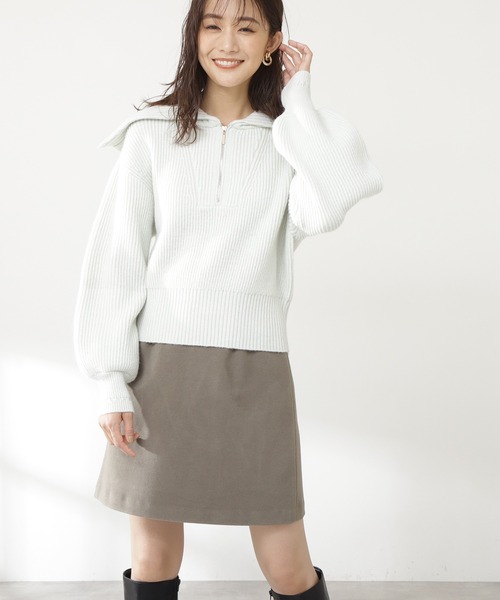 フロントにジップを施したビッグカラーニット。首元のジップ開閉によって、表情をかえて着られます。大きな襟はバックスタイルも印象的に見せてくれるトレンド感あるデザイン。今季注目のシアーアイテム、カジュアルなカットソー、柄ワンピースの上に着るのもオススメです。お手持ちのインナーと合わせてプルオーバーのようにも楽しめます。