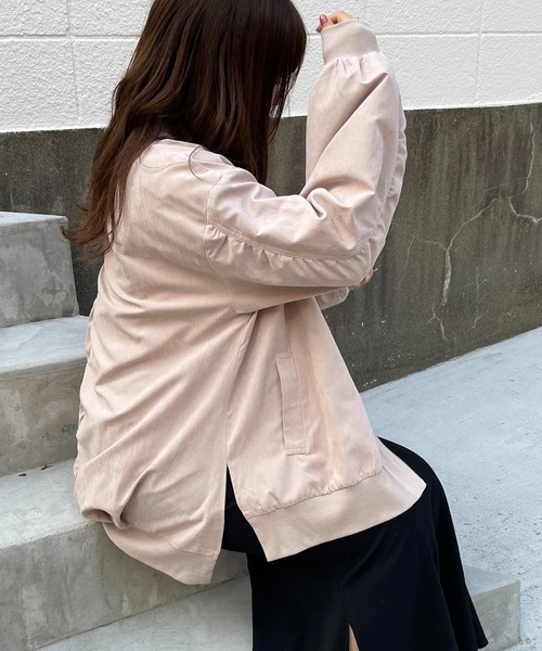 ゆるっと着こなせる、万能シャーリングブルゾン<MATERIAL>表面に特徴のある、ポリエステルピーチ起毛生地。さらっと羽織れる、軽い素材です。<DESIGN>端境期や、ちょっと肌寒さを感じる時期に着れるオーバーサイズのゆるブルゾン。後ろにたっぷり入ったデザインギャザーによって、肩を落として抜いて着るとゆったりとしたボリュームで女の子らしい印象に♡袖にもほどよいギャザーが入っており、ストレスフリーなゆるだぼ袖☆身幅にもゆとりがあるので、インナーにボリュームアイテムを着用しても、上から羽織ることができます。薄すぎず重すぎないので、持ち歩くのにも便利です。前後差があり、スリットも入っているので、体を華奢にも見せてくれます。袖も長めに作っているので、萌え袖にもなり、袖のたぽっと感を楽しめます!色々なボトムにも合わせやすい、着回しバツグンのスタッフもお気に入りブルゾンです!<関連ワード>大きめサイズ:カーキ:ブラック:アイボリー:リブ:秋:冬:ミドル丈:ゆるだぼ:ストリート:韓国風:スリット:リブ使い:裏地なし:ポケットあり:チュニック丈:万能:秋アウター:ブルゾン<CARE>※詳しくは製品に付属している洗濯表示をご参照ください。※撮影環境により、多少実際のカラーと異なる場合がございます。 また、携帯やスマートフォン、パソコンなどの画面上と実物では多少色が異なって見える場合がございますのでご了承ください。