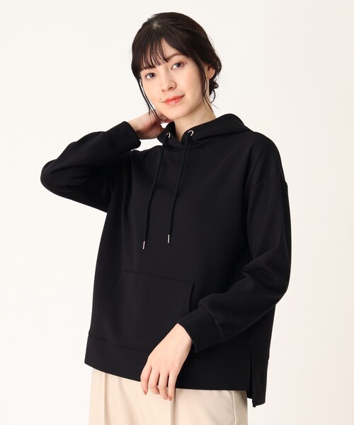 【デザイン】 やわらかいダンボール素材でお作りしたパーカー。 大人の女性が着こなせる一着に仕上げています。 ほどよいゆったり感でヌケ感はしっかりキープし、 前フードの重なり分がもたつかず襟元もしっかり決まります。 【生地感】 やわらかくつややか生地は、他のパーカーとの違いが一目瞭然です。 ※ライトベージュ(051)はやや透け感があるため、インナーの着用をおすすめします。 【サイズ】 大きいサイズ(LL)の展開あり。 ※04(LL)サイズはWEB限定サイズです。 【スタッフ着用コメント】 手に取ってすぐ心地よさがわかる、柔らかなダンボール素材です。 生地感は厚すぎないので長い季節使える優秀アイテムです! こちらの商品は主に冬に着用いただける商品です。 モデル情報:身長168cm B75 W60 H87 着用サイズ:02(M) 店舗へのお問い合わせ商品番号:741-13328 ●製品寸法: 02(M):着丈61cm B108cm 袖丈48cm 肩幅56cm 03(L):着丈64cm B111cm 袖丈50cm 肩幅57cm 04(LL):着丈67cm B114cm 袖丈51cm 肩幅58cm 備考: