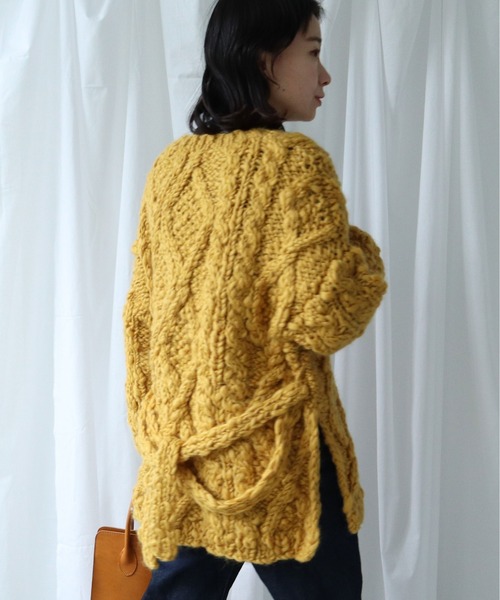 寒くなってウールのコートを着る時期になってもアウター感覚で着てもらいたいニットカーディガン。 ウールのコートと違い、室内に入っても、ニットアウターは脱がずにそのまま着ていてもなんだか可愛いもの。 ニットを羽織ってコーディネートが完成するように、ずっと着ていたい脱ぎたくない、そんなイメージで作りました。 スリットを深めに入れたり、ゆったりとしたサイズ感にしているので 中にもたっぷり着られるし、首元にぐるぐるとウールのストールを巻いても素敵です。 お取扱い注意 ●この製品は、素材の特性上、 ピリング(毛玉)が出来る場合があります。 ピリングには、お手入れが 必要です。 1日着用したら何日か休ませるなど、ローテーションを考えて着用して下さいます様お願い致します。 ピリングが出来ましたら引っぱって取ろうとせず、小さなハサミで丁寧に取り除いてください。 ●乱暴に扱いますと、破損しやすく、引っ掛けが起こりやすいので、着用中、着脱時には十分御注意下さい。 ●この製品は手編みの為、 サイズに多少ばらつきが あり、着用するうちに、 着丈、身巾等が変化する 場合が御座います。 《ネパールハンドニットに関して 》 こちらの製品は原産国にて原材料から生産しております。そのため獣毛特有のにおいがある場合がございます。 ひとつひとつ手編みで生産しております。 サイズに微妙に違いますが こちらの製品の特徴としてご了承下さい。 Lene non finito 2021 A/W ”クラシカルな美しさに憧れて” 伝統的なデザイン力強さと繊細なデティールクラシックなシルエット 英国紳士に憧れる気持ちをコーディネートに込めて。 ※画像はサンプルです。実際の商品と仕様・加工・サイズ等が若干異なる場合がございます。 ※モデルの着用画像は光の関係で商品の色味が若干異なります。正しい色味は商品詳細の画像をご参照ください。 ※取り扱いの注意については取り扱い表示をよくご確認の上、着用をお願いいたします。 ※工場の生産の都合上、入荷の時期が前後する場合がございます。ご了承ください。