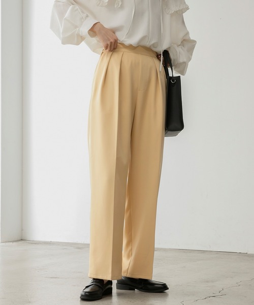 スタイルアップが叶う、美シルエットワイドパンツ■デザインどんなシーンでも使いやすい、ベーシックなワイドパンツが登場。リラックス感のあるワイドなシルエットでありながら、ウエスト部分が2タック仕様になっているのでスタイルアップ効果も◎ウエストの後身頃は太めのしっかりしたゴム仕様で、着脱ラクチンです。ストンと落ち感のあるシルエットとさらりとした素材感は、コーデに抜け感をプラスしてくれます。オトナっぽく上品な微光沢素材が印象的な1枚。ポリウレタンを含んだ生地を使用しており、左右前後にストレッチが効くので動きやすく着心地も抜群です◎長時間の移動や旅行など、オンオフ限らずご活用ください。ポケットも備わっているので使い勝手も◎オールシーズン着用可能な素材感で、ワードローブに1着欲しいアイテムです。■スタイリングハイウエストでラインの美しいパンツなので、コンパクトなトップスと相性抜群。ショート丈のロンTやトレーナーと合わせて着用いただくとバランスの取れたスタイリングに。また、ウエスト周りの2タック仕様がデザインポイントなので、トップスをウエストインしていただくのもおすすめです。もちろんオーバーサイズのアイテムでリラックス感のあるカジュアルコーデに仕上げても◎カジュアルにもキレイめにも着用いただける使い勝手の良い1着に仕上がりました。ブラウスとパンプスに合わせればオフィスカジュアルコーデとして、通勤時にもお使いいただけます。■POINT・センタープレスで美脚効果あり・2タック×ハイウエスト仕様でスタイルアップが叶う・ポケット付き※屋外での撮影画像は、光の当たり具合で色味が違って見える場合がございます。また、ご覧になっているデバイスやモニター環境によって、実際の色味と多少異なって見える場合がございますので予めご了承をお願い致します。≪お買い物をお楽しみいただくために≫▼商品のお気に入り登録完売カラーの再入荷通知や、ラスト1点の通知、セールの通知も受け取ることができます。▼ブランドのお気に入り登録新商品や再入荷等、いち早くブランドのお得な情報を受け取ることができます。※取り扱いについては、商品についている品質表示でご確認ください。