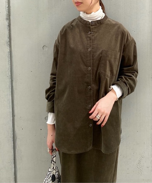 飽きのこないベーシックデザインがうれしいコーデュロイシャツ ●デザイン 少ししっかりした厚みのストレッチコーデュロイシャツ。 ゆったりと体の動くサイジングで、着るだけでこなれ感のあるコーディネートを楽しめます。 襟を抜いて着て頂くと後ろに緩やかな丸みが出て女性らしい印象になっておススメ。 秋口から使いやすい柔らかいトーンのカラー展開で、いつものスタイリングにさらりと羽織るだけでシーズンムードをプラスできるアイテムです。 ●おすすめコーディネート 今シーズンは、ボタンを閉じて一枚着として着ていただく着こなしも◎ セットアップでコーデュロイのスカートと合わせていただいたり、ワンピーススタイルに合わせて軽い羽織として着用いただくのもおすすめです。 ●素材 本体:綿97% ポリウレタン3% 別布:綿100% ・程よい伸縮性で着心地の良い一着 洗濯方法:手洗い 透け感:なし 裏地:なし 伸縮性:あり 生地の厚さ:普通 光沢:なし ============================== 【注意点】 ※画像の商品は光の照射や角度、お使いのモニター環境により、 実物と色味が異なる場合がございます。 あらかじめご了承下さいませ。 ============================== 【お買い物をもっと便利に楽しく♪】 『♡』をクリックでお気に入り登録 ・「商品のお気に入り登録」で・・・ ラスト1点や再入荷の通知が届きます。 登録して頂いた商品だけが対象となる、あなただけのタイムセールが開催されることも! ・「ブランドのお気に入り登録」で・・・ 新商品や再入荷など、いち早くブランドのお得な情報を受け取ることができますので、ご登録をおすすめします! ==============================