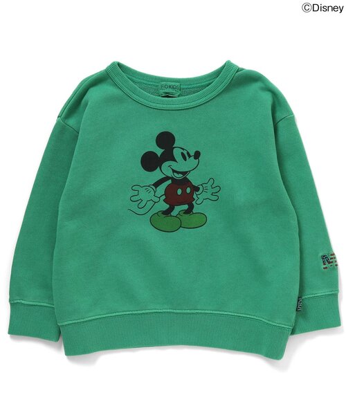 カラーによってミッキーのイラストが異なるカラフルなキャラクタートレーナー!左袖口にはワンポイント刺繍がほどこされ、製品染めによる加工感をプラス☆デニムはもちろんシンプルなボトムスとの相性抜群です◎