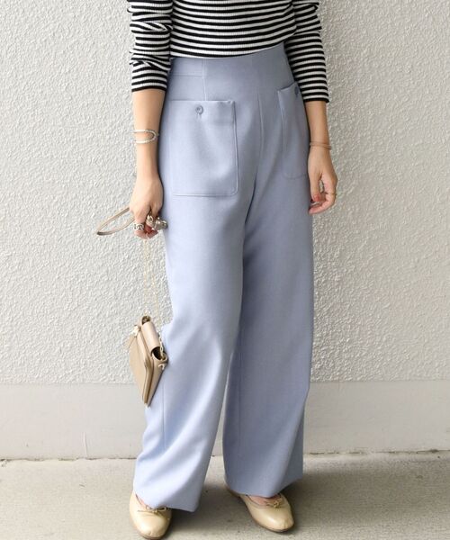 ◆オンオフ兼用可能な綺麗めパンツ。シワになりにくくご自宅でお洗濯も可能なので気兼ねなくご着用いただけます◆〈ウォッシャブルアイテム〉〈デザインポイント〉フロントのパッチポケットディテールがアクセントとなったストレートワイドパンツ。ウエストはすっきりとした印象で、後ろはゴム仕様なのでリラックス感のある着心地に。後ろにもポケットが付いているので実用性も◎〈生地・素材のポイント〉ウールのような膨らみのあるカルゼ素材を使用しています。ポリエステル素材なのでシワになりにくく、ご自宅でお洗濯可能な点も嬉しいポイントです。〈コーディネート・その他〉ウエスト周りはすっきりとしているのでタックインがオススメ。コンパクトなニットにブーツなど重心を下げると今年らしいスタイリングに仕上がります。綺麗めなブラウスやシャツと合わせてお仕事スタイルにも◎様々なボトムに合わせやすいのでこれからの季節に重宝すること間違いなしです!※屋外での撮影画像は、光の当たり具合で色味が多少異なって見える場合があります。商品の色味は、スタジオでの詳細画像をご参照ください。※末永く愛用頂く為に、アテンションタグ・洗濯ネームを必ずご確認の上、着用又はお取り扱い下さい。※画像の商品はサンプルです。実際の商品と仕様、加工、サイズが若干異なる場合がございます。
