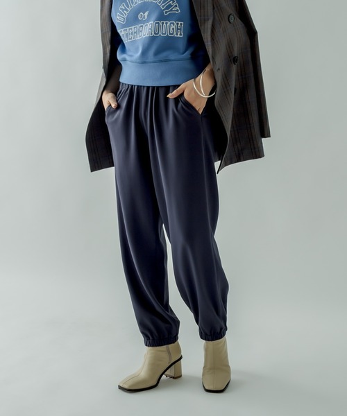 お洒落上級者みえするこなれたパンツの登場! 商品コメント ・裾にかけて締まるデザインがこなれ見え間違いなし! ・カットソーのようなつるっとした素材が女性らしさもある一着。 ・ウエスト全体がゴム仕様でさらに内紐もついているのが嬉しいポイント◎ ・股下も余裕のあるサイズ感は腰回りもしっかりカバーしてくれます。 スタイリングポイント ・綺麗めなブラウスやシャツ合わせは抜群にお洒落見えするスタイリングに。 ・裾はゴムしようなのでフラットなシューズあわせがオススメ◎ 着用コメント 身長:152cm 骨格:ストレート 内紐がついているので丈感の調節のができるのが嬉しい! トップスはインすることでより脚長効果抜群に◎ 身長:158cm 骨格:ウェーブ ゴム仕様のウエストとゆとりある股下で気になる腰回りをスッキリ見せてくれます。 ショート丈のトップスにあわせてウエスト位置を高くみせるのがポイントです◎ 身長:164cm 骨格:ナチュラル 少し長めの丈感のアイテムとあわせたスタイリングがオススメ。 足元はブーツ合わせで存在感のある印象に◎ 骨格タイプ ストレート:全体的に立体型で筋肉質。 ひざ下はすらっと細め。ボディラインにメリハリがある。 ウェーブ:上半身が薄く、華奢。 緩やかな曲線のボディライン。 下半身に重心があり女性らしい体型。 ナチュラル:筋肉や脂肪があまり感じられない体型。 腰の位置が高く骨や関節が目立ちやすい。 ※洗濯、取り扱い 洗濯:不可 アイロン:低温110℃まで スチームなし タンブル乾燥:不可 <製品の取り扱い注意> ・雨や汗による、濡れた状態での使用は、色落ちや色移行の原因となる場合がありますので十分にご注意下さい ・濃色は摩擦により淡い色のものとの重ね着や、イス、バッグ、ベルトなどへ色移りしますのでご注意ください 本製品は洗濯の繰り返しや着用による摩擦などで色が薄くなっていきます。ご了承ください ・タンブラー乾燥はお避け下さい ・濃色は色落ちしますので洗濯の際は必ず単独で押し洗いしてください ・アイロンは必ず直接当てずに当て布をご使用ください ・風通しが良く、湿気の少ないところで保管してください 裏地:なし 伸縮性:ややあり 光沢感:ややあり 生地の厚さ:普通 商品のお気に入り登録➡ お気に入りアイテムの値下げ・再入荷・在庫1点などの通知を受け取ることができます。 ※サイト上のカラー名と、お届け商品に記載されているカラー名が異なる場合がございます。 ※商品の色味は、撮影場所や光のあたり具合などにより色味が違って見える場合が御座います 。 また、お客様のお使いのPCのモニター環境などにより色味が違って見える場合が御座います。予めご了承の上ご注文下さい。