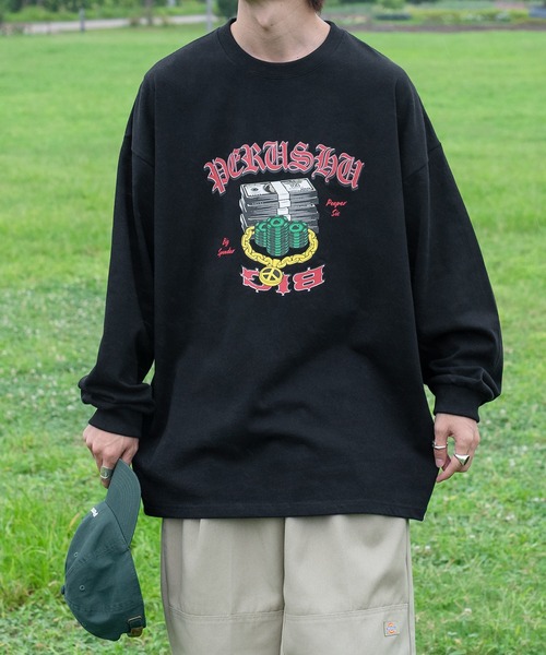 -アイテム説明-ヘビーウェイトな生地で、1着で着たくなる可愛い “ ロンT ” の登場!ユニークでポップなイラストが施された2種類の柄。ストリートな雰囲気のデザインで、ボディのシルエットは今っぽくゆったりと仕上げています。アウターの中に着用しても映えるロンTで、これからの季節に是非オススメのアイテムです!-コーディネート-秋は、“ ビッグシルエットモヘアライクカーディガン(228693) ” や “ ダメージルーズニットカーディガン(217879) ”、冬は、“ オーバーサイズ Perushu M-65 モッズコート/キルティングライナーセット(236275) ” を上からサッと羽織ってもGood◎Perushuらしいゆるっとした特徴的なサイズ感で、絶妙なカラー展開のボトムスと合わせて他にはないPerushuならではのコーディネートを楽しんで♥️ワンポイントとして、こちらも “ Perushuロゴソックス(218968) ” を履いても可愛い!“ Perushuロゴバケットハット(229194) ” をプラスしたり、ワンポイントとして、“ レトロ缶バッチ(235317) ” を付けたり、どんなコーディネートにも合う “ 迷彩柄・格子柄バックパック(218944) ” や “ Perushuロゴショルダーバッグ(227963) ” の【 Perushu 】1周年記念ならではのアイテムと合わせて、幅広いスタイルのコーディネートもGood◎ーーーーーーーーーーーーーーーー透け感:ほぼなし(ホワイト・ホワイト系その他はややあり)裏地:なし伸縮性:ややあり光沢感:ほぼなし生地の厚さ:普通ーーーーーーーーーーーーーーーー-スタッフ着用コメント-身長:173cm/体型:痩せ型/普段サイズ:L/着用サイズ:Lサイズ感:ゆったりとしており、ルーズ。素材感:コットン100%で、しっかりとした素材感。着心地:リラックス感があり、ストレスフリーな着心地。-推奨サイズ-M…~171cmL…172cm~-Perushuブランドコンセプト-韓国ストリートからインスパイアされたWEB限定ブランド!アート、レトロ、ユニーク、トレンドなどをテーマにグラフィックアイテムを中心に展開しています!※サイト上のカラー名と、お届け商品に記載されているカラー名が異なる場合がございます。商品サイトページカラー名:ホワイト → 商品タグ:02:ホワイト マネー商品サイトページカラー名:ホワイト系その他 → 商品タグ:05:ホワイト ヤシの木商品サイトページカラー名:ブラック → 商品タグ:09:ブラック マネー商品サイトページカラー名:ホワイト → 商品タグ:18:ブラック ヤシの木※ご覧いただく環境により、実物と色味が異なって見える場合がございます。ご了承ください。【お買い物をよりお楽しみいただくために】▼商品のお気に入り登録(ハートマークをクリック)完売カラーの再入荷通知や、ラスト1点の通知、セールの通知も受けることができます。▼ブランドのお気に入り登録新商品や再入荷など、いち早くブランドのお得な情報を受け取ることができます。