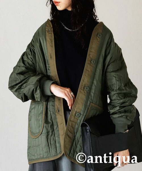 スタイリッシュさ際立つ! 【辛甘コーデの必需品】M-65ライナージャケット シルエット、中綿の分量などを調節し拘りぬいたライナー。 スッキリ見えるのに、くたっとラフさもあり サッと羽織るだけでサマになる一着! ≪DETAIL≫ ・レイヤードも組みやすいノーカラー。 ・体型カバーも叶う絶妙な丈感◎ ・あえて丸みを持たせたポケットがアクセント! ・コーデに馴染みやすい同色のマットボタン☆ ・タック入りで腕周りがごわつかない! ≪FABRIC≫ ・保温性の高い中綿をたっぷり使用♪ ・強度の高いリップストップ生地! ・程よいフィット感の二段階袖リブで防寒対策も◎ ・折りたたんでバッグにもしのばせることができるコンパクトさ! ・約60gの驚きの軽さ! ≪COLOR≫ ブラック、カーキの2色展開! ≪SIZE≫ フリーサイズ! ≪SERIES≫ 【同商品メンズ品番】60384150/YZ-00005 キルティングライナーJK ≪着用感想≫ 伸縮性→伸びない 透け感→透けない(光の加減や環境により異なる場合有) 裏地→なし 肌触り→チクチクしない ポケット→あり ▼Sスタッフのサイズ感想 身長:152cm 体重:42kg アームホール→ゆったり 着丈(最短位置)→太もも 身幅→ゆったり ▼Mスタッフのサイズ感想 身長:158cm 体重:51kg アームホール→ゆったり 着丈(最短位置)→ヒップ下 身幅→きつくない ▼Lスタッフのサイズ感想 身長:164cm 体重:60kg アームホール→きつくない 着丈(最短位置)→ヒップ下 身幅→きつくない