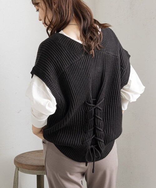 バックスタイルにこだわったVネックニットベスト【ポイント】●秋冬のレイヤードスタイルに欠かせないシンプルニットベスト●さりげないレースアップデザインがバックスタイルのアクセントに●Vネックが顔回りにスッキリとした抜け感をプラス●ほどよいゆるっと感でボトムを選ばず幅広いアイテムとも相性抜群●袖がない分アウターの下に着込みやすいのもポイント【オススメコーディネート】・ロンTの上からゆるっと合わせたこなれカジュアルコーデ・シャツにレイヤードすればキチっと感のある大人カジュアルな印象に・ボトムは落ち感のあるスカートでゆるっとフェミニンに・ショーツ合わせでロングブーツを合わせればトレンドスタイルに・デニムスタイルでベーシックに合わせるのも◎--------------------------------------------------------------生地の厚さ:普通伸縮性:あり透け感:ややあり裏地:なし洗濯方法:ご自宅での手洗い可--------------------------------------------------------------※商品のお取り扱いに関しましては、商品に付属のアテンションカード、洗濯ネームをご覧ください。※撮影場所やお使いのモニター環境により若干お色味が異なる場合がございます。特にロケの撮影では明るく見える傾向にございます。 ※サイト上ではフリーサイズの表記ですが、商品タグにはMサイズと表記されている場合がございます。その場合、ワンサイズでのご用意となりますのでサイズミスなどではございません。詳しいサイズはサイズスペックをご確認いただきますようお願い致します。※サイト上でのカラー名とお届けした商品に記載されているカラー名が異なる場合がございますので予めご了承ください。--------------------《Information》--------------------【商品のお気に入り登録】▼【ハートマーク】をクリック!完売カラーの再入荷通知やラスト1点の通知、セールの通知を受け取ることができます。【PAL CLOSETアプリにてブランドフォロー】▼新商品や再入荷、セール情報やクーポン配布などブランドのお得な情報をいち早く受け取ることができます。是非ご登録頂き、お買い物をお楽しみください◎ <返品・キャンセルについて>・着用・洗濯後の返品は致しかねます。・商品到着後、着用前に商品を確認して頂きますようお願い致します。