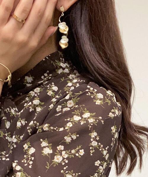 ★WEB限定アイテム★ 2021 秋アイテム 七色の光を放つ小振りの立体フラワーがフェミニンなピアス。動く度に揺れるデザインで華奢ながらも存在感のあるアイテムです。ゴールドの曲線を描くリーフが顔周りを華やかに彩ってくれるのも◎。スタッド式でひっかかりにくく、付けやすくなっています。上品なアイテムなので普段使いはもちろん、お出かけシーンにもおすすめ。