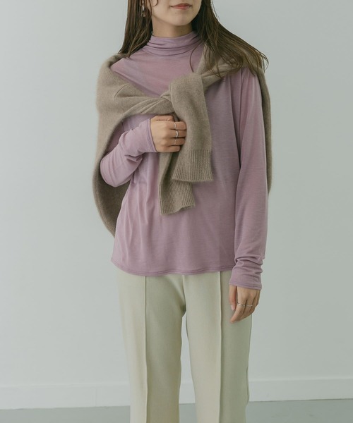 【今年らしいスタイリングを完成させる万能トップス】インナーとしても使いやすい薄手のシアー素材で仕上げたハイネックトップス。一見シンプルですが、バックスリットでさりげないアクセントを効かせました。身幅には程良くゆとりがあり、体のラインが出過ぎないのも嬉しいポイント。POINT・シンプルながらも今年らしさを感じるデザイン・肌触りの良い柔らかな素材COORDINATEニットやカーディガン、オールインワン&ジャンパースカートのインナーなど幅広いシーンで重宝するアイテム。着回し力が高いので色違いでお持ちいただいても◎-----------------------------透け感 : あり伸縮性 : あり裏地 : なし光沢 : ややあり生地の厚さ : 薄手デザイン : スタンダード-----------------------------※この商品は、ピリングができやすい素材を使用しています。発生したピリングは手でむしり取ると毛羽立ちや糸切れなどの原因になりますので、小バサミなどを使い元糸を傷つけないようにひとつひとつ取り除いてください。※モデルの着用画像の場合、光の当たり具合により、実際の色味と異なって見えることがございます。色味は、商品単体の画像をご参照ください。モデル身長:165cm着用サイズ:one洗濯表記:手洗い , ドライクリーニング※詳しい洗濯方法については、商品の品質表示タグをご覧ください