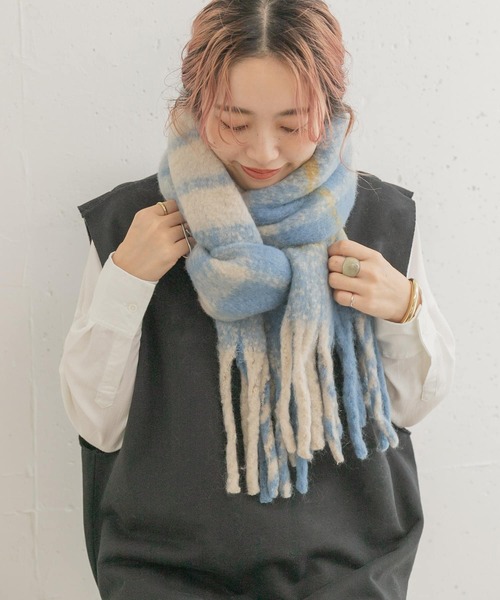 シワになりにくく、型崩れもしにくいリサイクルポリエステル素材を使用したチェック柄のストール。耐久性・強度・伸縮性が高いことに加え、吸湿・速乾でサラサラとした肌触りが持続するのも特徴。ブークレーのもこもことした生地感がシーズンライクな印象のオススメアイテムですよ♪ ※この商品は、ピリングができやすい素材を使用しています。発生したピリングは手でむしり取ると毛羽立ちや糸切れなどの原因になりますので、小バサミなどを使い元糸を傷つけないようにひとつひとつ取り除いてください。 ※乾燥機はご使用できません。干す際には、型崩れにご注意の上、陰干ししてください。 ※その他お取り扱いに関しましては、商品に付属のアテンションタグをご覧ください。 ※商品画像は、光の当たり具合やパソコンなどの閲覧環境により、実際の色味と異なって見える場合がございます。予めご了承ください。 ※商品の色味の目安は、商品単体の画像をご参照ください。 ▼お気に入り登録のおすすめ▼ お気に入り登録商品は、マイページにて現在の価格情報や在庫状況の確認が可能です。 お買い物リストの管理に是非ご利用下さい。