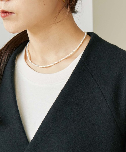 ■淡水パール ネックレス一粒一粒形や色の異なる淡水パールが連なった繊細なネックレス。アジャスターやその留付け金具はSV925という純銀の含有量の高いシルバーを使用しました。アレルギーや繊細な肌の方に。肌に当たる部分にストレスの少ないネックレスです。40cmのチョーカータイプの淡水パールネックレス。1本ですっきりTシャツや首元のコンパクトなトップスと合わせるのがおすすめです。同シリーズのロングネックレス【 2601AC001212 】と2連に重ね、カジュアルに取り入れるのも〇パールというフォーマルな印象のアイテムを背伸びしすぎず、カジュアルに取り入れられます。アジャスターの長さ:5cm※画像はサンプルです。実際の商品と仕様・加工・サイズ等が若干異なる場合がございます。※撮影画像は光の当たり具合やモニターの環境により色味が違って見える場合がございます。※取り扱いの注意については取り扱い表示をよくご確認の上、着用をお願い致します。※お取扱い上の注意 アクセサリーのご使用にあたりまして は下記の点にご注意下さい。 ●アレルギー体質の方や体調が低下し ている方などかぶれることがあります。 肌に異常を感じた時はご使用をお止め いただき専門医にご相談下さい。 ●アクセサリーをつけたままでの入浴 や水仕事は厳禁です。 ●アクセサリーは、こわれやすいもの です。取り扱いに注意していただき、 大切にご使用いただける様お願い申し 上げます。 ●素材の性質上、紫外線等により変色 する場合がございます。取扱いにはご 注意下さい。