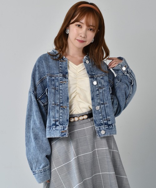 ノーカラーでスッキリと女性らしく着られるGジャン 定番アイテムでもあるGジャン ノーカラーにすることで、ハイネックアイテムやネックにボリュームのアイテムともコーディネートできまたスッキリとした印象で着られます。 ショート丈ですがゆったりと身幅のあるシルエットなので、襟を抜いて力の抜けたトレンドコーディネートを楽しんでいただけるアイテムです。 ガーリーなワンピースなどとの相性抜群!どんなアイテムとも相性よく合わせやすい一枚。 ※撮影環境やご覧のモニター環境によって実際の商品とお色味が多少異なってみえる場合がございます。ご理解の程何卒よろしくお願い致します。