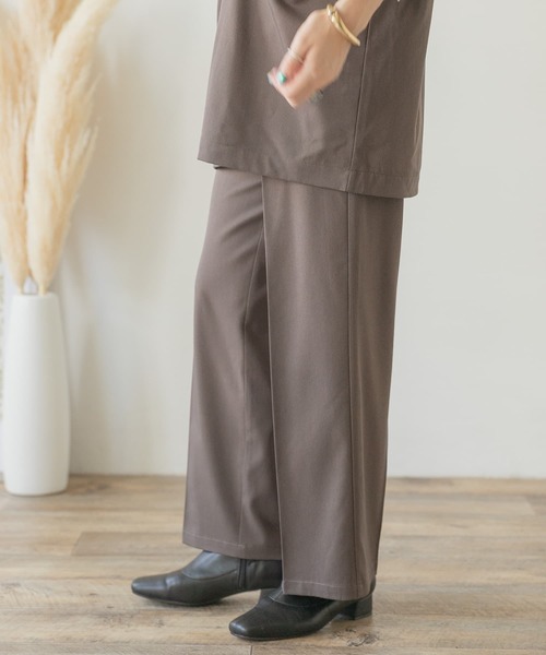 センタープレスを施したシンプルなストレートパンツ。フロント部分に2本タックを施しており、見た目以上にゆったり感のある履き心地を叶えました。ウエストの後ろ身頃にはゴムを施しているので非常に楽な着用感も魅力ですよ◎ ※商品画像は、光の当たり具合やパソコンなどの閲覧環境により、実際の色味と異なって見える場合がございます。予めご了承ください。 ※商品の色味の目安は、商品単体の画像をご参照ください。 ▼お気に入り登録のおすすめ▼ お気に入り登録商品は、マイページにて現在の価格情報や在庫状況の確認が可能です。 お買い物リストの管理に是非ご利用下さい。 ----------------------------- 透け感:なし 伸縮性:なし 裏地:なし 光沢:ややあり ポケット:あり -----------------------------