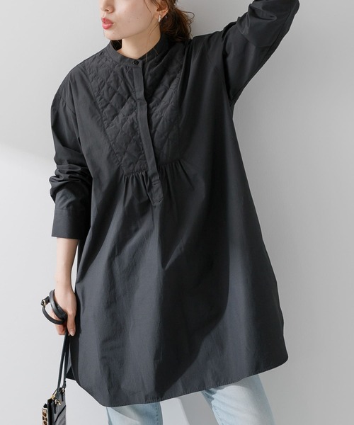 胸元の切り替えデザインが目を惹くシャツチュニックシンプルなデザインにキルティングを組み合わせ飽きのこない一着にウエスト周りも隠れるのチュニック丈ながら、絶妙なサイジングでウエストインでもアウトでも着用出来ます。※商品画像は、光の当たり具合やパソコンなどの閲覧環境により、実際の色味と異なって見える場合がございます。予めご了承ください。※商品の色味の目安は、商品単体の画像をご参照ください。-----------------------------透け感 : ややあり(ホワイトのみ)伸縮性 : なし裏地 : あり(キルティング部分のみ)光沢 : なしポケット : なし-----------------------------▼お気に入り登録のおすすめ▼お気に入り登録商品は、マイページにて現在の価格情報や在庫状況の確認が可能です。お買い物リストの管理に是非ご利用下さい。