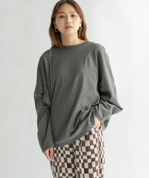【ヘビロテ必至!コーディネートを選ばない“ミニマルさ”が魅力の1着】 ストレスフリーに着ていただけるBIGシルエットのドルマンTシャツ。ラインステッチや切替を施すことで、一見シンプルに見えて実はデザインにこだわった1着。サラッと着るだけで抜け感が演出できるのでデイリーユースにも最適です。 POINT ・着心地の良い綿素材 ・長くご愛用いただけるミニマルなデザイン ・雰囲気の異なるカラーリング COORDINATE 定番のデニムはもちろん、チェッカー柄パンツなどのデザインボトムとも難なく合わせられます。タイトスカートを合わせてメリハリのあるスタイリングを楽しんでも◎ ====================================== お気に入り登録のおすすめ ■商品のお気に入り登録 再入荷・ラスト1点、セールの通知などを受け取ることができます。 ■ブランドのお気に入り登録 新商品や再入荷、クーポン情報などお得な情報を受け取ることができます。 ====================================== ※商品画像は、光の当たり具合やパソコンなどの閲覧環境により、実際の色味と異なって見える場合がございます。予めご了承ください。 ※商品の色味の目安は、商品単体の画像をご参照ください。 ----------------------------- 透け感 : ややあり(IVORYのみ) 伸縮性 : ややあり 裏地 : なし 光沢 : なし ポケット : なし -----------------------------
