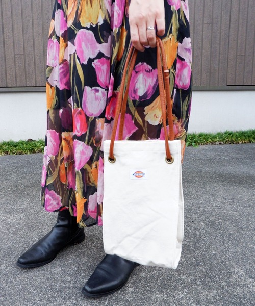 ▦SQUARE CANVAS TOTEBAG▦ ☑DETAIL 軽くて丈夫なキャンバス地のトートバッグ。 両サイドにポケットがついていてペットボトルやミニ水筒、折りたたみ傘などが入ります。 約5Lでお出かけには必要なアイテムはしっかり収納出来ます。 内ポケット付きで携帯やパスケースなどすぐ出したいものを入れるのに便利。 口も大きく中身も見やすく取り出しやすいです! 大きなフラップがついているので、防犯面も◎。 コットン素材でオールシーズン使いまわしが出来ます♪ カラー展開はベーシックなオフホワイト、ブラック、ブラウンと差し色に使える サックスの4色。 普段のお出かけはもちろん旅行にも大活躍間違いなし! プレゼントにも喜ばれるバッグです☆。 【Dickies/ディッキーズ】 全米各地の工場や米軍などに採用されるなど実用性を重視してきた歴史があり、 徹底的に労働者のニーズに応えるための尽力が反映された製品はアメリカ全土に広く浸透していきました。 オーセンティックなスタイルと優れた機能性の両立し、ワークウエアーへのニーズを製品に投影する努力は100年以上も受け継がれています。 近年ではファッション雑誌などでも頻繁に紹介され、アーティストや芸能人にも愛好者が大勢います。 ワークマーケットのみならずカジュアルマーケットでも世界的にその存在が確立されてきています。