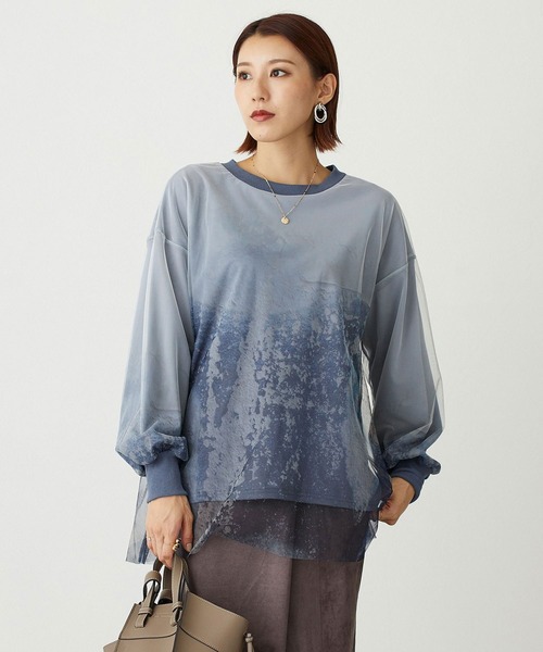 【ふんわりとしたエアーリー感漂う女性らしいチュールトップス】アート柄チュール×カットソーがドックキングしたTシャツ。重ね着をしたようなデザインで、裾が自然な動きが出て素敵な1枚。袖口がリブで仕上げで、ボリュームスリーブの女性らしいデザインに。スカート・パンツともに合わせやすく、デイリーに活躍してくれます。-------------------------■透け感:なし■裏地:なし■伸縮性:あり■光沢感:なし■生地の厚さ:上/薄手・下/普通-------------------------☆★お買い物をお楽しみいただく為に★☆★商品のお気に入り登録完売カラーの再入荷通知や、ラスト1点の通知、セールの通知も受け取ることができます。★ブランドのお気に入り登録新商品や再入荷等、ブランドのお得な情報をいち早く受け取ることができます。