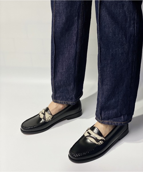 【G.H.BASS公式ショップ】 GMT SHOPが販売するG.H.BASSの製品は、全て日本総代理店の㈱ジー・エム・ティーが輸入した商品です。並行輸入商品や類似品にはご注意ください。 G.H.BASS ローファーの起源 1876年にアメリカで誕生したG.H.BASSは、ローファーを生んだブランドとして広く知られています。 その存在はローファーの代名詞といっても過言ではありません。 アイビーリーガーの足元を飾る定番の革靴で、アイビールックの定番シューズとして、今もなお愛され続けています。 アッパーのサドルにワンポイントのエキゾチック素材を使用した特別モデル。 <価格改定のお知らせ> 2022/8/1より原材料や運賃の高騰により価格改定をさせて頂きます。 商品タグに記載している価格につきまして、旧価格のものが混在している場合がございます。 ご了承下さいますよう、お願い申し上げます。