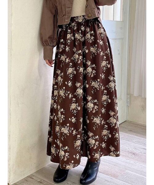 \大人な小花柄でレトロに決まる1枚/ 生地をふんだんに使い揺れ感の可愛いフレアスカート。 今季は小花柄で落ち着いた大人デザインに! 秋冬のカラーに合わせやすい2色展開です♪