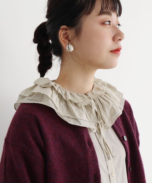 薄く柔らかなローンを仕様した付け衿。たっぷりのギャザーを入れ2段にしボリュームを出しました。リボンで結ぶデザインにしたので、付け衿としてだけでなく、腰に巻いたり、かばんに巻いたりアレンジを楽しめます◎お手持ちのお洋服とも組み合わせていただけますが、同シリーズのブラウス(4801BL001221)やチュニックブラウス(4801BL002221)と合わせていただくのもオススメです◎Malle chambre de charme(マル シャンブルドゥシャーム)BRAND CONCEPT写真の中の 歳を重ねた 私色褪せて 少し 古ぼけた時間を想像させる 佇まい 「いま」と「ながいとき」の重なり時代と手をつなぎ 心に残る 洋服フランス語でトランク、長持ち手洗い可※キナリ、ブラック⇒着用商品はサンプルになります。※実際は、ヒモの長さ40cmになります。(サンプルは30cmになっています。)※サンプル商品は、実際の商品と仕様、加工、サイズが若干異なる場合がございます。 ※撮影画像は、光の当たり具合やモニターの環境により色味が違って見える場合があります。あらかじめご了承ください。