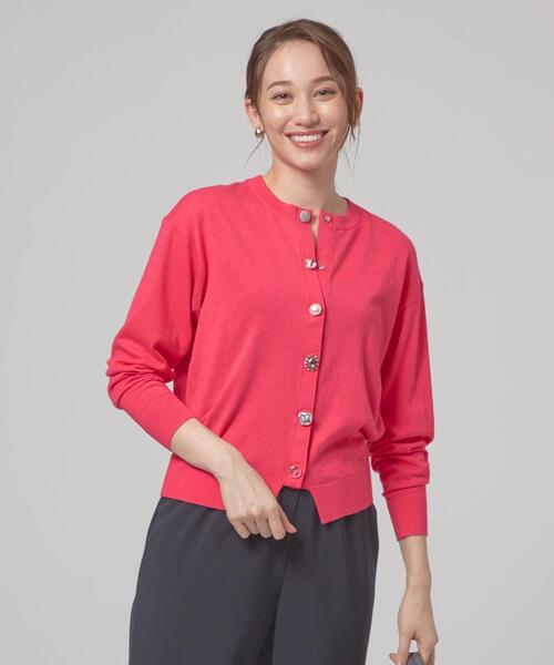 季節の変わりめに便利なコットン素材をベースにしたニットカーディガン ■デザイン バランスのとれたきれいなシルエットで毎シーズン人気のカーディガン。 パール調、ビジュー、メタルのボタンをランダムにあしらい、ボディカラーによってボタンのカラーも変えた拘りの詰まった一枚。 絶妙な着丈バランスでどんなボトムともコーディネートしやすいアイテムです。 ■素材 コットンにしなやかさをプラスするレーヨンをブレンドした、季節の変わりめに重宝する素材感。 ハイゲージで肌触りの良さも魅力です。 ■コーディネート ボタンの存在感が一枚着としての華のあるスタイリングを演出します。 膝丈スカートなど女性らしいボトムはもちろん、ワイドパンツなどスマートなスタイルにもおすすめです。 ============================ 裏地:なし 透け感:なし 生地の伸び:あり 光沢感:なし ケア方法:手洗い可 ============================ <TORRAZZO DONNA(トラッゾドンナ)> デイリーにおしゃれを楽しむ女性に、さりげなく時代感を取り入れたトラディショナルなモダンカジュアルを提案するブランド。 【注意事項】 ※商品を使用前に、タグ等に記載されている「取り扱い上の注意書き」、「洗濯表示」を必ずご確認ください。 ※商品画像は、光の当たり具合やパソコンなどの閲覧環境により、実際の色味と異なって見える場合がございます。予めご了承ください。 ※商品の色味の目安は、商品単体の画像をご参照ください。 店舗へお問い合わせの際は、 全国のTHE STATION STORE各店舗まで下記の品名/品番をお申し付け下さい。 品名:T/D C/RA マルチBIJ CD 品番:6928-599-0280