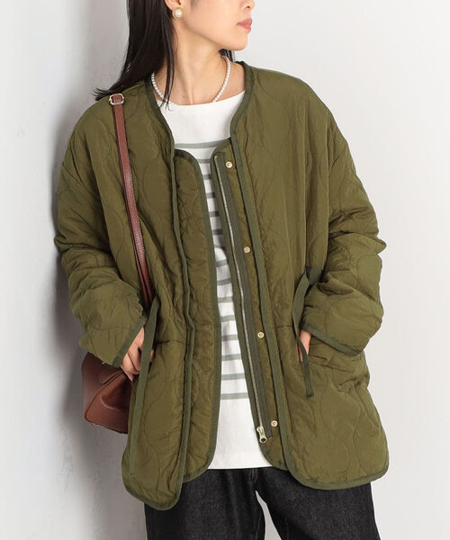 ◇FREDY REPIT◇【2021AW】ざっくりと羽織れるミリタリーカジュアル・キルティングコート●シンプルなデザインが、どんなコーデとも相性抜群●古着感のある、くたりとした風合いがこなれ感のあるアウター●絶妙なオーバーサイズと程よい厚みでさっと羽織れる手軽さが魅力●お尻がすっぽり隠れる着丈で、細身パンツとも安心して合わせられる女性らしい着丈●オーバーサイズのニットやビックシルエットスウェットも楽に着こめるゆとりで、重ね着しやすく真冬まで活躍●中わた入りで保温性が高く軽いので、アウトドアやアクティブシーンにも最適なノーカラージャケットコーディネートいつものデニムやスキニー、チノパンツと合わせてもすっきりキマります。フレアスカートやワンピースと合わればフェミニンを追加したコーディネートに◎秋冬に向かう気温が不安定な時期はインナーを薄手トップスにして、これ一枚を羽織ってのおでかけもおすすめです。冬アウターのストレスを解消してくれる、とにかく軽くて暖かいアウター。透け感:なし裏地:あり伸縮性:なし光沢感:ややあり生地の厚さ:やや厚手●お取扱い上のご注意●*アテンションタグを必ずご確認の上、着用又はお取り扱い下さい。*店頭及び屋外での撮影画像は、光の当たり具合で色味が違って見える場合があります。商品の色味は、スタジオ撮影の画像をご参照下さい。*商品画像に関しては出来る限り忠実に表示出来るよう努めておりますが、お客様がご利用のモニターの設定及び特性により、実際の商品と比較し色味に若干の誤差が生じる場合があります。*画像の商品はサンプルとなりますので実際の商品と仕様、加工、サイズが若干異なる場合がございます。◇商品のお気に入り登録◇【お気に入りに登録】を是非ご活用ください。 再入荷の通知や、ラスト1点の通知、セールの通知がいち早く届きます。◇ブランドのお気に入り登録◇新商品や再入荷など、いち早くブランドのお得情報が届きます。