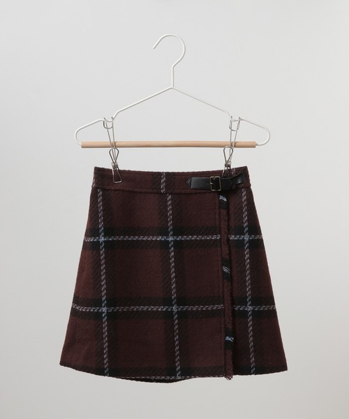 上品に着こなせてアクティブに動いてもOK!【デザイン・シルエット】 ・秋らしい深みのあるタータンチェックにフロントのベルトディテールがアクセントを効かせるデザイン。 ・ラップスカート風で、後ろウエストがギャザー使いに。 ・ママとお揃いで着られる人気の親子リンクシリーズ。 【カラー】 ・ブラック、ブラウンのシックな2色展開。 【スタイリングポイント】 ・フリルブラウスに合わせてお出かけに。 ・ハイソックス×スニーカーでキッズらしい爽やかなプレッピールックが完成。 ・同シリーズでWEB限定スカート(品番:GDC61000)、フリンジ付きスカート(品番:GDC51150)も展開しているので親子お揃いもおすすめ。 ----------------------------- 裏地:あり 透け感:なし 伸縮性:なし 生地感・厚さ:厚手 ポケット:あり ウエスト:後ろゴム 季節:秋・冬 ----------------------------- ※撮影時の光、お使いのモニター環境によって色の見え方が違う場合がございます。