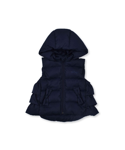 秋のコーデに活躍する毎年人気の女の子用ベスト。 今年のベストは、サイドについた三段のフリルがポイント。 リボンの形のポケットも、女の子らしいかわいらしいデザインです。 後ろの裾が長くなった、フィッシュテールのシルエットで、トレンド感を取り入れています。 中わたには、ダウン80% フェザー20%を使用しており、軽くてあたたかいです。 ange:天使 <2021年9月 GIRL シーズンテーマ> 2021AW のレディーストレンドのひとつである、ヴィンテージムードを取り入れたロマンティックスタイルをテーマに展開。 フリルやギャザーなど甘めのシルエットを、スタイリングやカラーで今っぽく提案します。 カラーはベリー系の落ち着いたピンクをメインに、ベージュやブラウン、ワインといった暖色系でまとめています。 【BeBe(べべ)】 "LOVE MODERN" 少しおませで、生意気なヨーロピアンカジュアルの提案。 時代性・流行性をとらえ、ベーシックでもワンポイントを施した遊び心、楽しさを盛り込んでいます。 シンプルだけど、こだわりのあるオリジナリティーを重視しています。 洗濯:手洗い可 フード取り外し可能です。 ファスナー有りです。