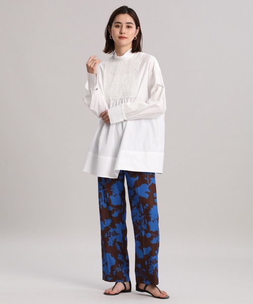 今シーズントレンドの大花柄をブルー×ブラウンの秋らしい配色で取り入れたセミワイドパンツ。オールゴム入りのイージーな仕様で、前はギャザーが寄らないようすっきり仕上げています。シンプルなブラウスやニットを合わせて、パンツを主役にした着こなしがおすすめです。 ・裏地なし ・ポケットあり ・ウエストゴム仕様 ・水洗い可 《Viscotecs/ビスコテックス》 1600万色を用いた鮮明な表現力と、ポリエステル・ナイロン・綿・ウール・シルクなど様々な素材へのプリントを可能にしたインクジェット技術により、アイテムを選ばないプリント素材を提案するセーレン(株)の新技術です。 ■サンプル撮影商品■ こちらの商品はサンプルでの撮影となっております。実際の商品とは、商品情報(生産国、色味、上代、納期など)が変更になる場合がございます。予めご了承ください。