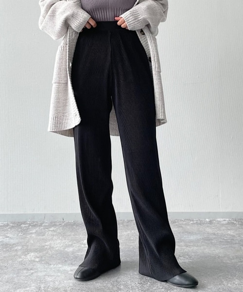ーーー滑らかな風合いのカットソー素材に細かなプリーツを施したカットパンツーーーシンプルなストレートシルエットに開き無しのゴムギャザーのウエストバックで楽に着用頂けるイージーパンツです。脚のラインを拾わずリラックスした履き心地ですが、縦に入ったプリーツで足長効果も。杢調の生地にプリーツ施すことで、立体感のある素材に仕上げました。シャツブラウスやカジュアルなスウェット等、トップスを選ばずスタイリングが決まるのも◎裾はセルフカット可能なのでお好みの長さで着用頂けます。〈注意事項〉・サンプルにて撮影をしておりますので、実際の商品とは仕様や加工・サイズ等が若干異なる場合がございます。・モニター・環境等により実際の商品と色味が多少異なって表示される場合がございます。予めご了承をお願いいたします。・撮影環境により、光の当たり具合で色味が違って見える場合があります。あらかじめご了承下さい。